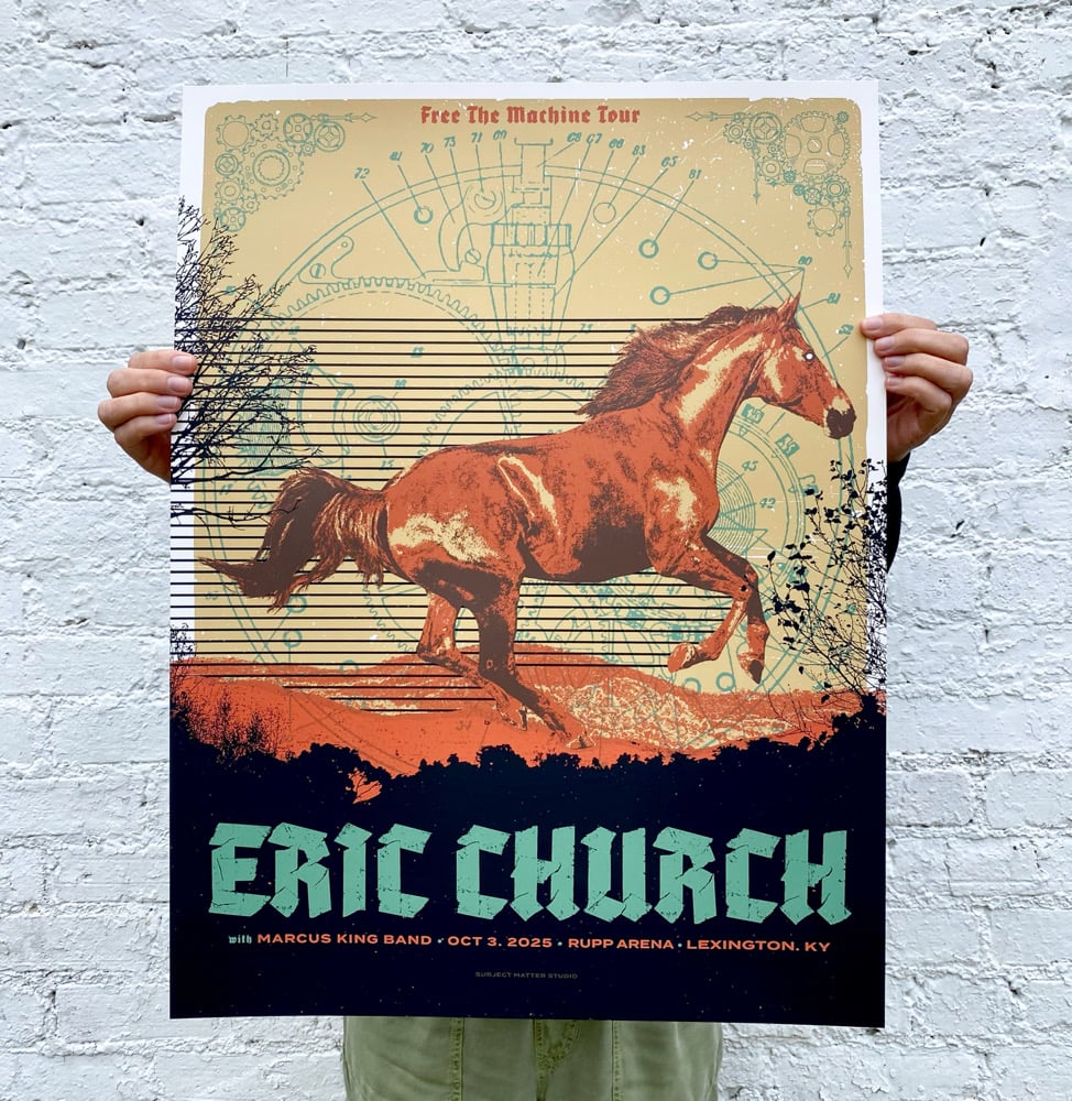 Official poster for Eric Church‘s show at Rupp Arena in Lexington Kentucky on October 3, 2025. Only 4 available, artist edition.