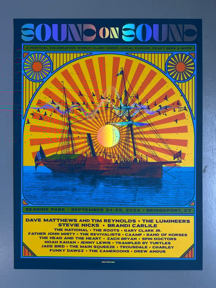 Sound On Sound Festival Dave Matthews, The Lumineers, Stevie Nicks, Brandi Carlile ans others! Sept 24-25, 2022 18x24. Artist Proofs, signed by poster artist Drew Findley
