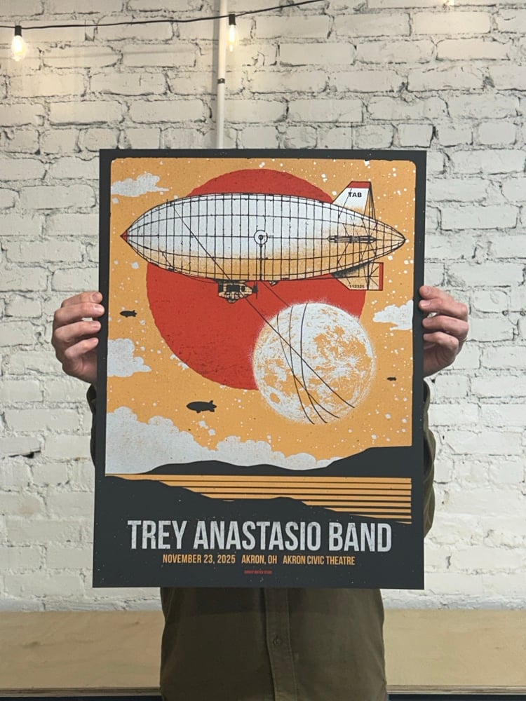 This is the offical artist editon printed on Stardream Silver paper for Trey Anastasio Band's show in Akron, OH at Akron Civic Theatre on November 23, 2025. 18x24 ***THESE WILL SHIP DEC. 1 (AFTER THANKSGIVING BREAK)***